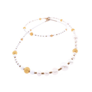 Collaret banyat en or amb vidre de Murano, òpal i perla cultivada