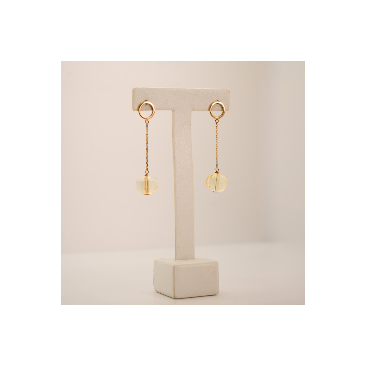 Pendientes largos de oro de 18k con citrinos amarillos
